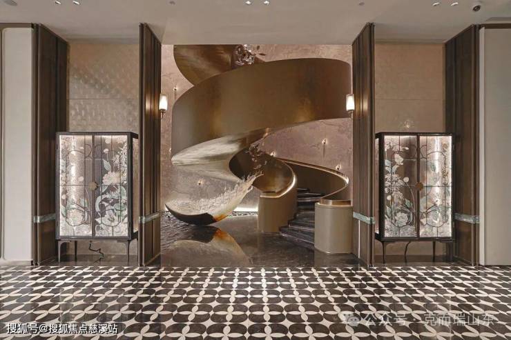 其一,产品观层面,以高规格硬件呈现 “既有面子又有里子” 的产品主张 —— 社区大门采用东西跨度约92米、高度约11米的大尺度设计,搭配地上地下双酒店式环岛落客区,通过空间的仪式感营造富有尊享感的归家体验;建筑立面采用类玻璃幕墙+铝板线条+玻璃栏板组合,打造 “蓝宝石天幕” 立面;精装体系引入有厨电品类“爱马仕”之称的嘉格纳品牌,并搭配大金、汉斯格雅、唯宝等国际一线品牌。
