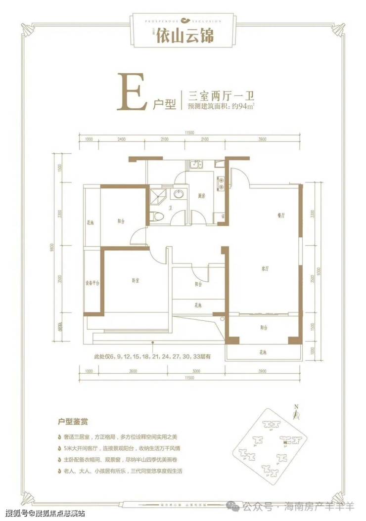 3号楼、6号楼:总层高32层,三梯9户 ,现房