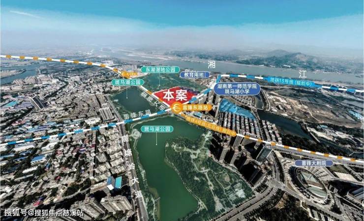 湖南建投·御湖印毗邻湘江沿江风光带,紧靠东湖湿地公园、斑马湖公园,尽享约1400亩生态资源,居于此让自然的四季美景焕新生活,揽尽江、湖、园三重滨水盛境,筑就主城区难能可贵的宜居领地。交通配套方面,踞守城市主轴雷锋大道,接驳地铁4号线北延线雷锋东路站(规划中),无缝换乘地铁13号线(规划中),汇聚城市发展黄金动脉,纵横驰骋城市繁华商圈,畅达无阻。