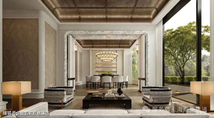 国际化大师景观团队倾力构筑,以“玉”为引,融入“繁花”,更有百年古树点缀,结合海南在地文化,以「六幕十二境」营造奢雅尊崇的礼序归家体验。