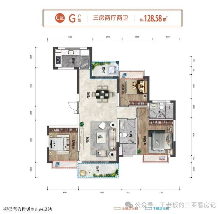 🔹共享空间,厨餐客阳台一体,阖家欢喜满堂