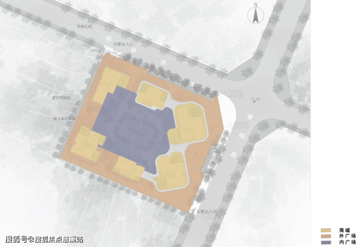 本基地基本呈方形,地形方整。沿基地四周布置商业综合楼。通过入口广场、中心广场、沿街商业与商业内街的组合形成有机的商业空间。营造了不同的空间及景观效果,使得商业区的建筑和环境形态层次分明,有强烈的韵律感。