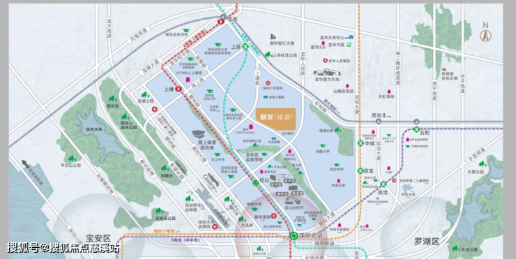 该项目位于龙华区民治街道红山-上塘板块。该项目靠近上塘路与民塘路交汇处,周边有金地上塘道、中央原著、星河传奇等成熟住宅小区,生活配套设施齐全,居住氛围浓厚。此外,项目靠近地铁4号线和6号线的红山站,交通便利,可快速到达深圳北站及香港西九龙。