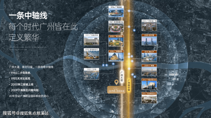 广州新中轴是广州发展的“大动脉”,天河北-珠江新城CBD中轴两端土地已发展饱和,顺应“南拓”发展趋势,未来的发展重心将落到海珠。