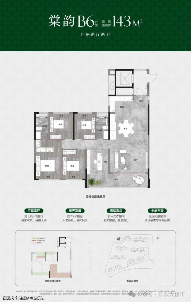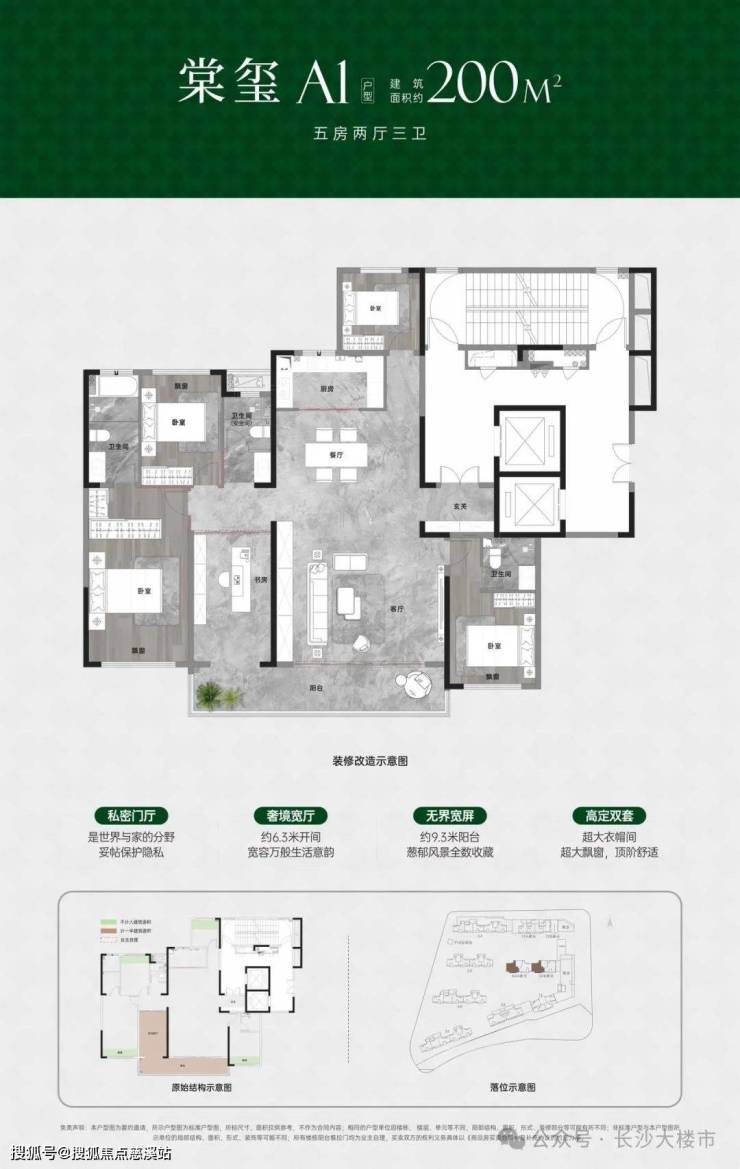 主城区16层小高,建面约143㎡五房新规小高层,和建面约200㎡城央全景大平层,同等面积享更多。