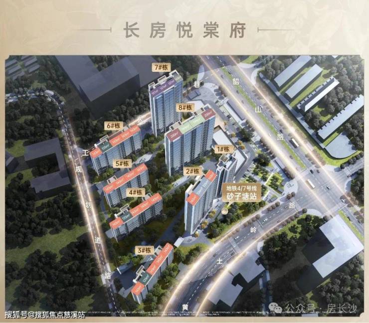 方圆900米范围内,坐拥韶山路、芙蓉路双干道,更拥揽地铁1号线、3号线、4号线、7号线(在建,预计2027年建成通车),傲立地铁4/7号线砂子塘上盖,通行全城无碍,纵观长沙,止此悦棠府。