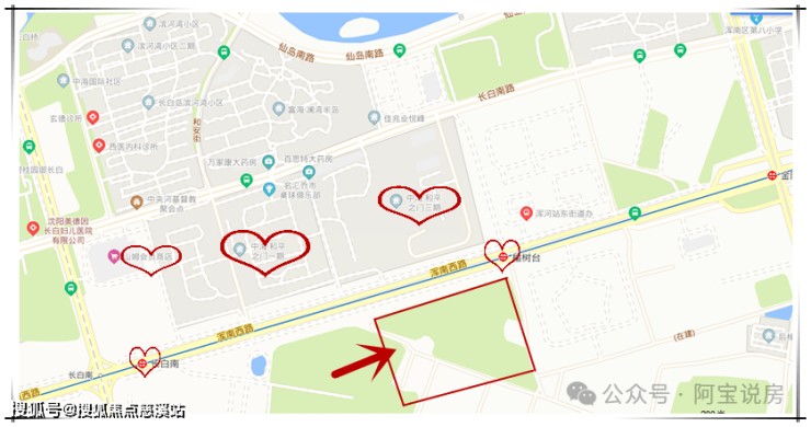 特别值得关注的是,该地块与和平区行政边界仅隔一条浑南西路,直线距离长白岛教育资源聚集区不足2公里,却因行政区划归属浑南,形成了特殊的“价值效应”。