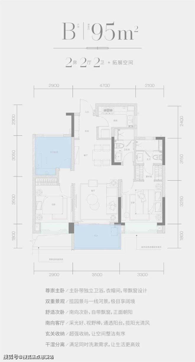 B户型——建面约95㎡2房2厅2卫+拓展空间
