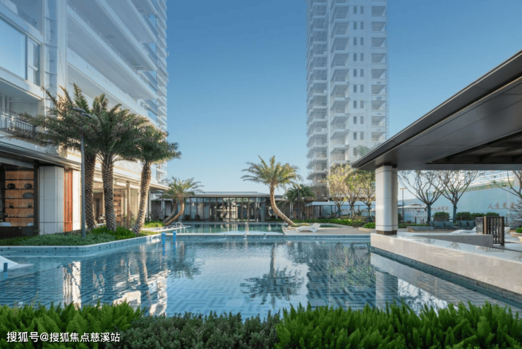 约700㎡会所级大型户外泳池,池水澄澈如镜,倒映着流云与天空,仿佛将一整片蓝天融化其中,宛若镶嵌在学林绿境中的一颗蓝色宝石,与自然园景和谐相融。