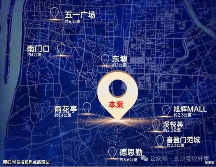 项目距雨花亭直线距离约1.4km、距离五一商圈近约6km