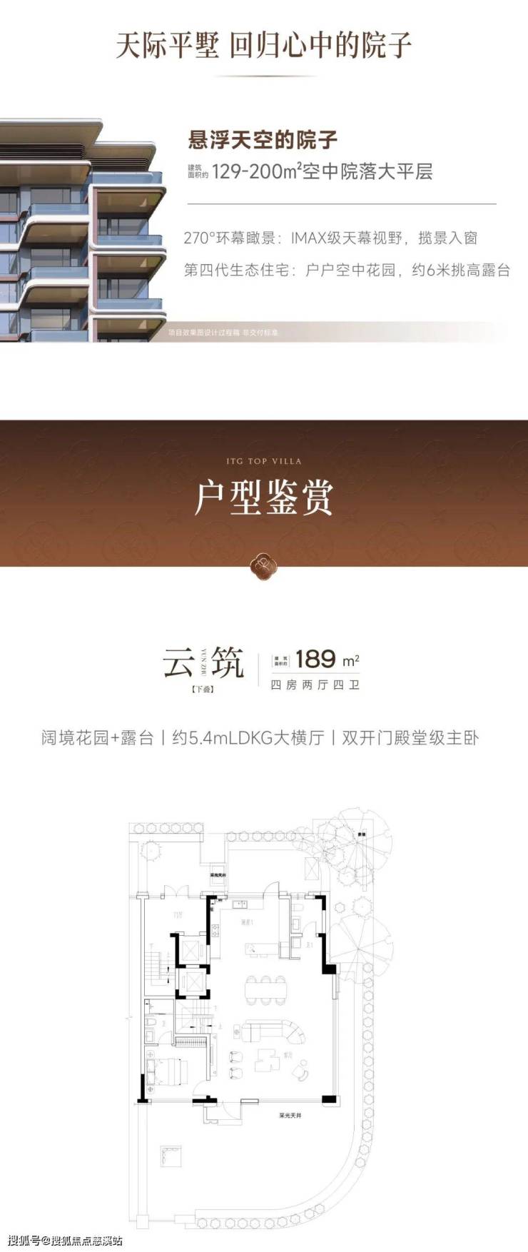 岛东首座 4.0 云墅生态馆 即将盛启 建面约129-139㎡四代小高层| 建面约169-204 ㎡复式空中墅/大平层| 建面约189-266㎡天地院墅