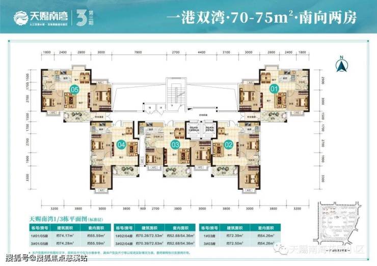 两房产品:建面约69-76㎡,总价约157-211万,南北通透或卧室客厅全朝南。