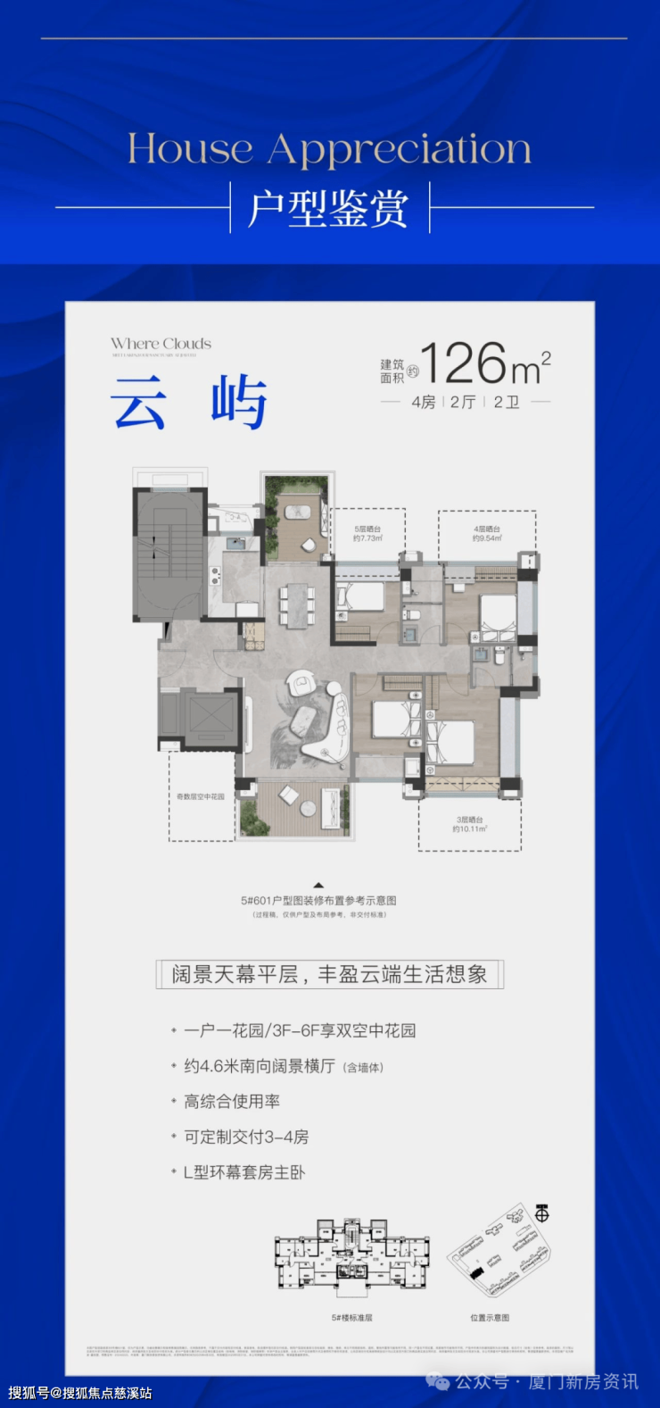 产品面积:105㎡4房2卫60套,126㎡4房2卫30套;