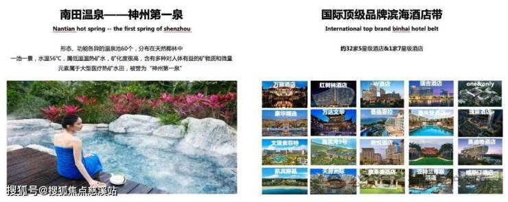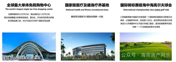 中国人民解放军总医院(301医院)、中国人民大学附属中学(人大附中)、海南国际免税城、 HELLO KITTY 主题乐园、海昌梦幻不夜城、乐高主题公园、亚特兰蒂斯水世界、海棠68(Arena)商业街、水稻国家公园、海中海高尔夫、36洞神泉国际高尔夫、IMAX影城、银行、超市、生活商圈配套。
