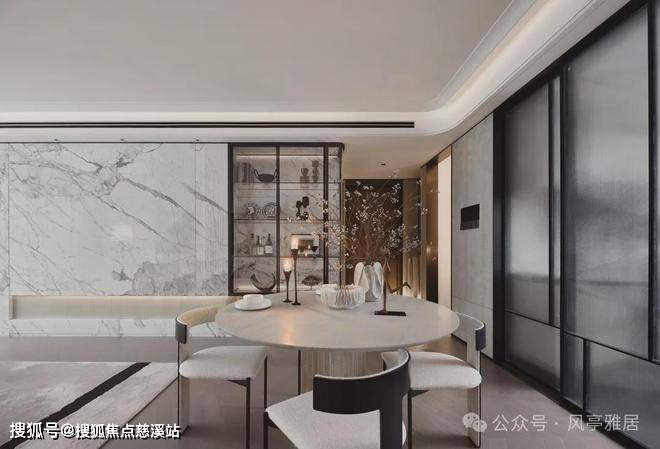 寻径而走,随着纹理稍有棱角的弧面墙的动线,抵达的是有着相同琉璃纹路铺就的玻璃门,与之连接的则是更加舒适静谧的休闲接待空间,用细腻入微的艺术装饰品引人入内,空间的艺境氛围在这材质变换的细微之间便能清晰的察觉分毫,分毫之差足以将来者带入不同的心境之中。