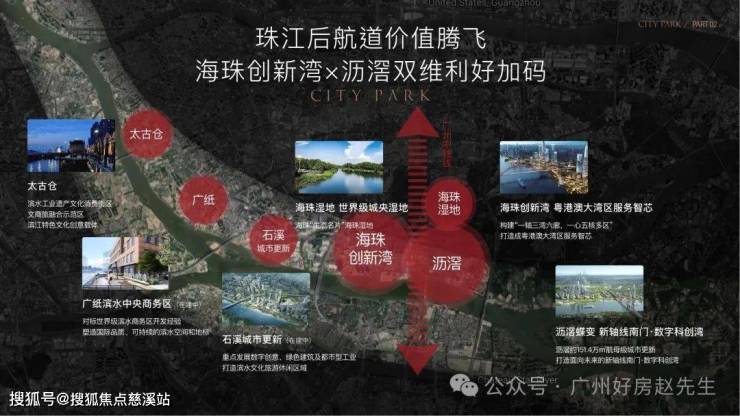 海珠创新湾将构建成展示珠江城市品牌、承启广州文化基因、集聚现代化科创要素的新城市轴线核心门户;沥滘百万方城市更新,打造未来南延线新中轴。