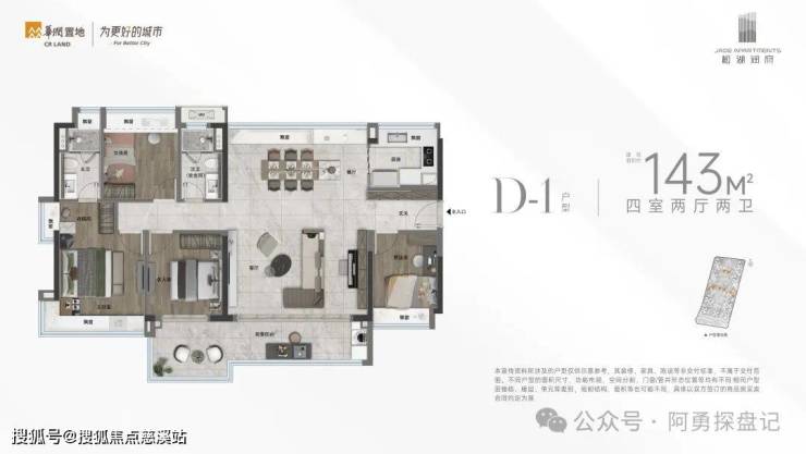 D-1户型 143㎡ 四房两厅两卫
