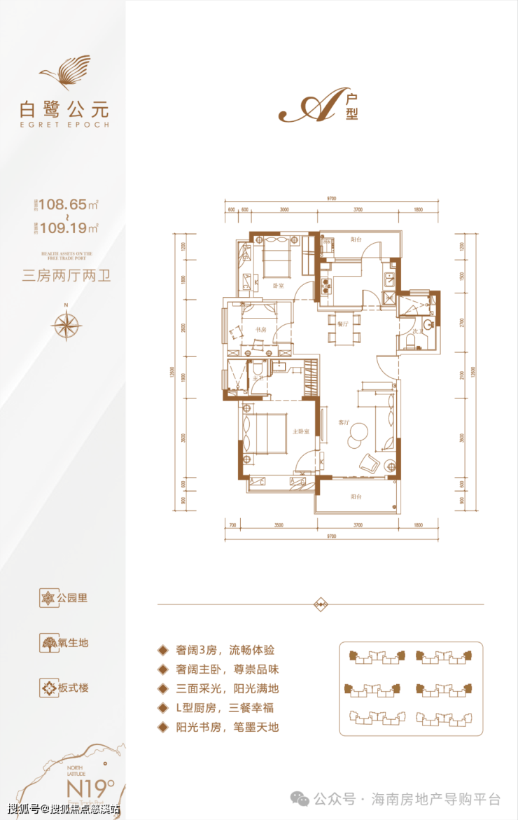 【建筑面积】:约103-109㎡板式景观三房
