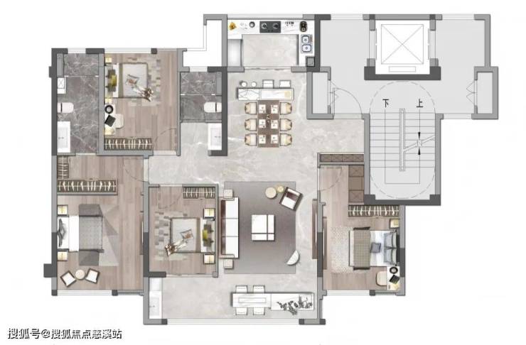 2楼没有过多赠送,设计三房,其中一个房间没有卫生间使用,大概率要分割主卫,楼下做一房,整体来说舒适度还是不错,无非是楼上有邻居,差点私密性。