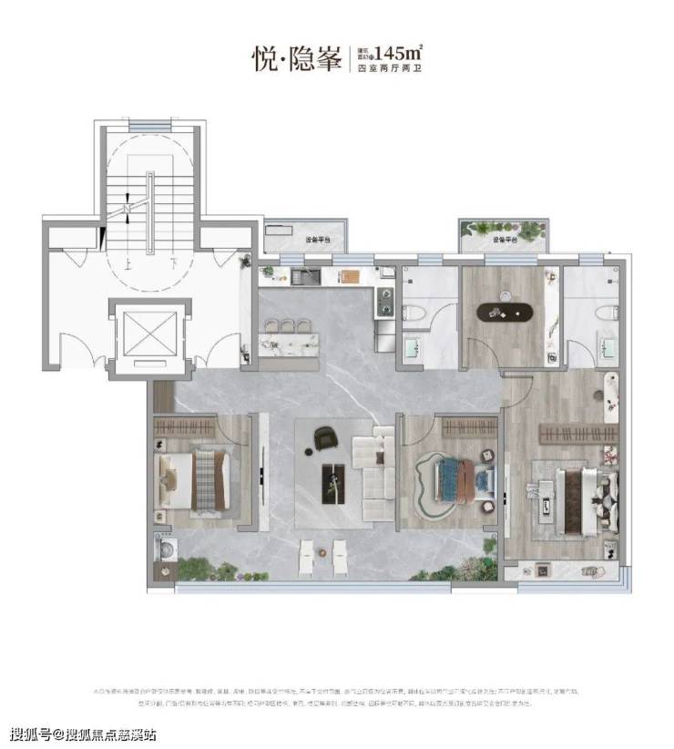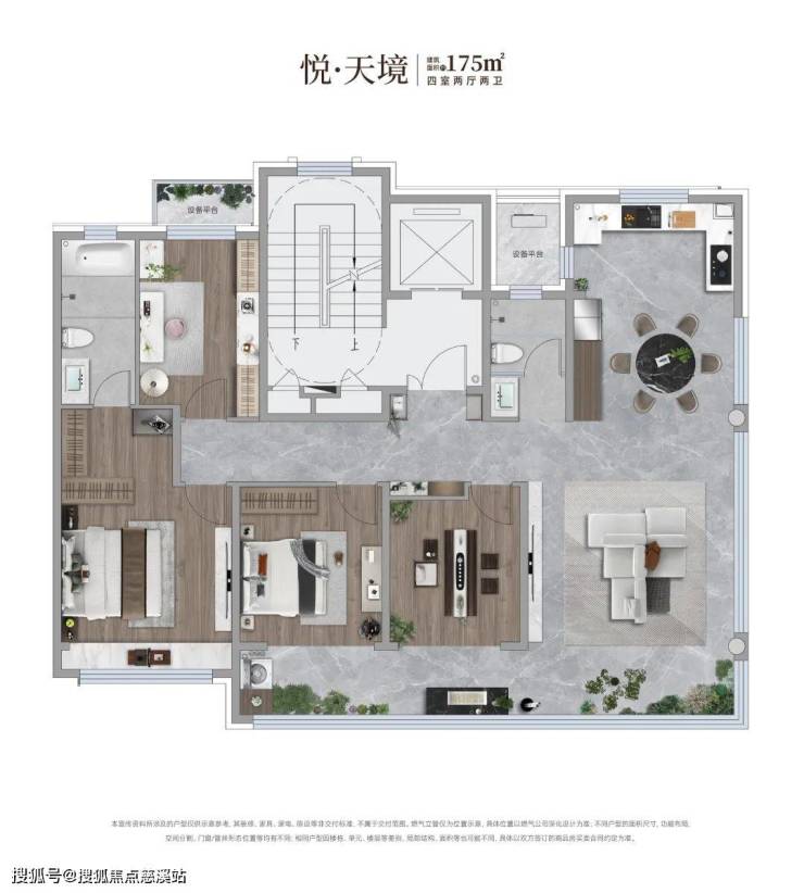 一梯一户的175户型其设计理念将周边的自然景观资源利用到了极致,约11米三联屏阳台,配合“跑道式”阳台,成为主城中轴观景台。