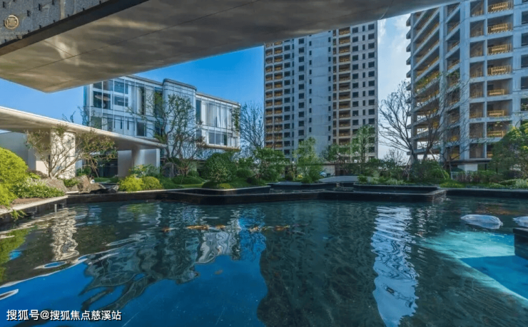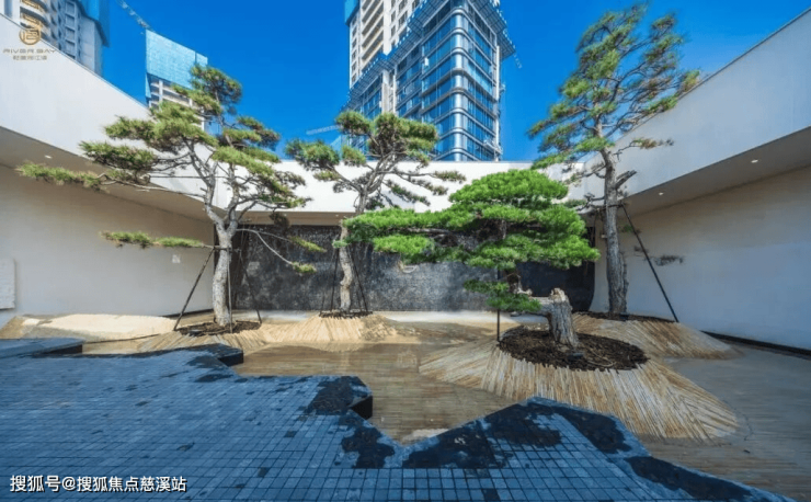 园中32棵特选名贵松树、1棵百年乌桕,以及铁冬青、紫微、油橄榄花等名贵树种,搭配约500平的中心水域剧场、约300平的江湾锦鲤客厅,步入其中,自然松弛感扑面而来。