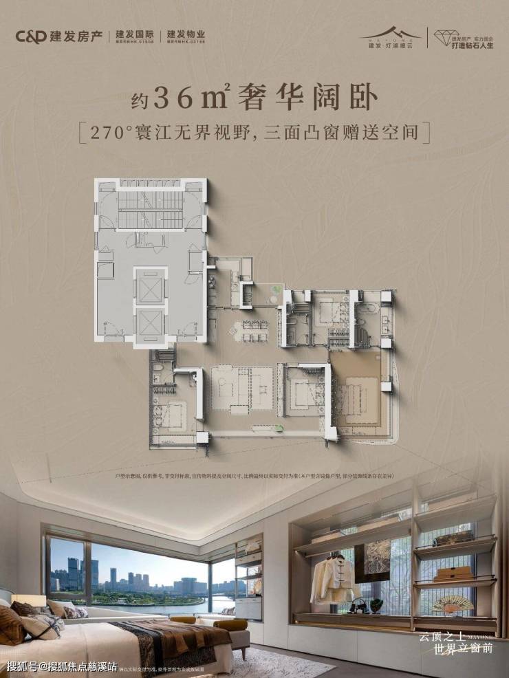 约36㎡奢华主阔卧,独立卫浴、观景飘窗
