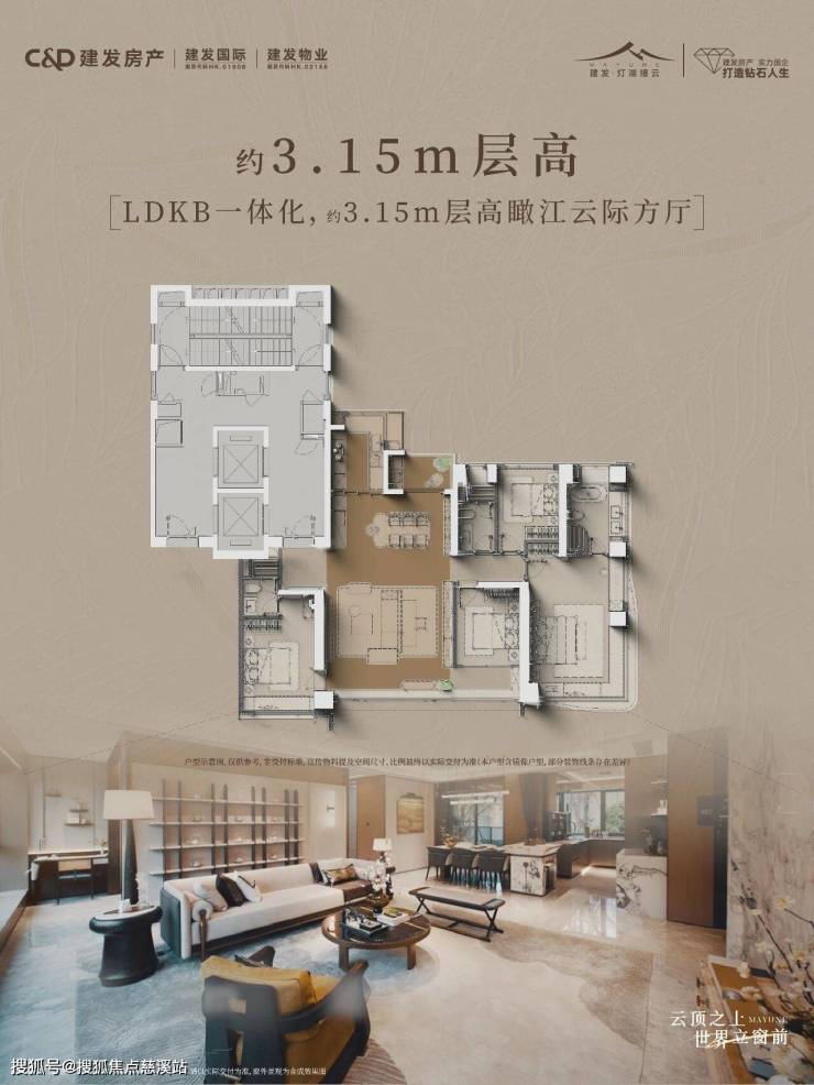 约3.15m层高瞰江云际方厅,演绎城市会客厅的气度