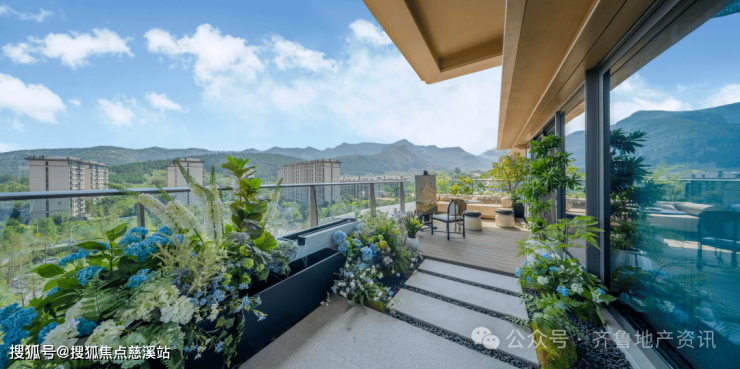 尺度豪横:客厅、餐厅、空中花园完全打通,形成一个超级大的互动空间,开派对或日常走动,更显宽敞自在。户属空中花园,满足不同场景需求,想象一下围炉煮茶的场景,对着山景品茗闲聊,室内外自然交融,生活情调拉满。