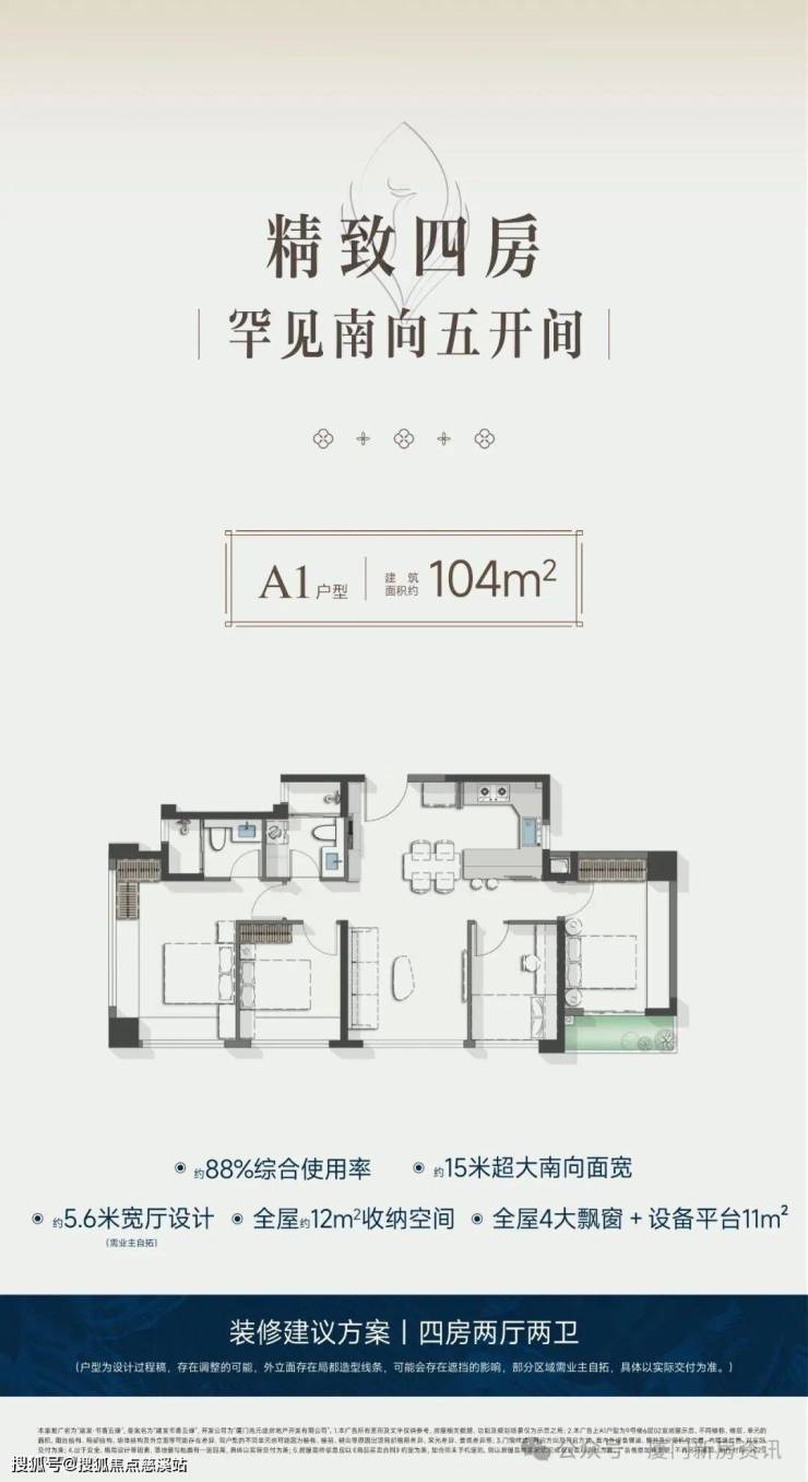 104㎡户型:得房率达到88%,5开间朝南,采用 LDKB 一体化设计,大大压缩了过道面积,实际使用空间能对标传统120㎡户型,总价约580万起,性价比超高。