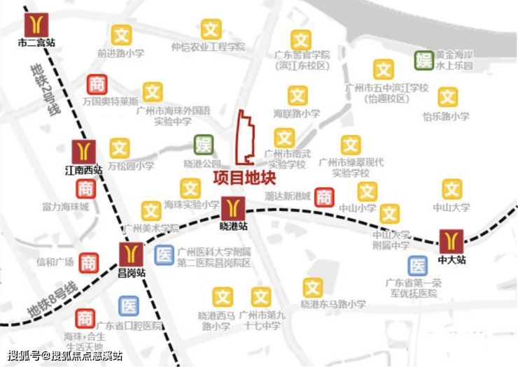 距离地铁8号线晓港地铁站仅0.6km,8号线可以直达琶洲、客村等商务圈,一站到昌岗可以换乘2号线,到南站、白云新城也比较方便,三站客村换乘3号线,到珠江新城、体育西路,能实现40min内通勤。