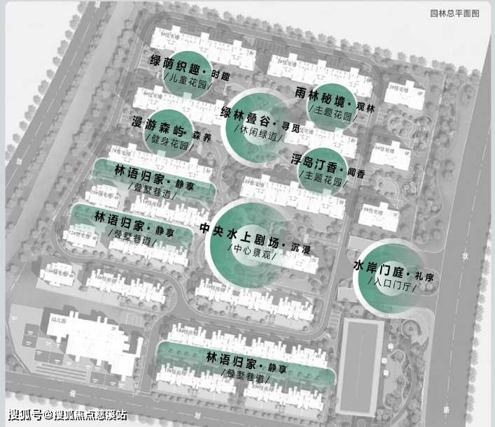 盛海棠以东方美学为魂,度假休闲为肌体在园林设计中融入岛屿、森林、海浪等自然元素规制两轴、三片区、多节点度假式园林