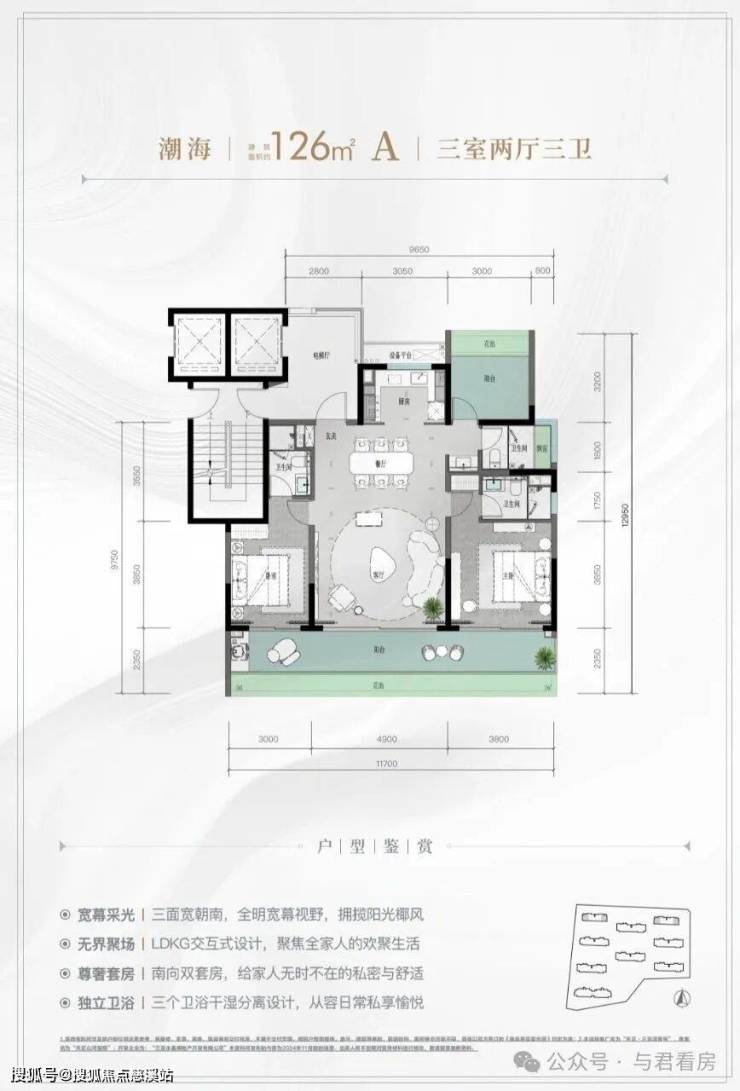 规划建筑面积约126-213㎡观海奢装大平层,约3.1米阔绰层高,部分户型创新设计270°全景飘窗主卧套、四开间朝南等,全成品高标奢装,营造全新舒居体验。