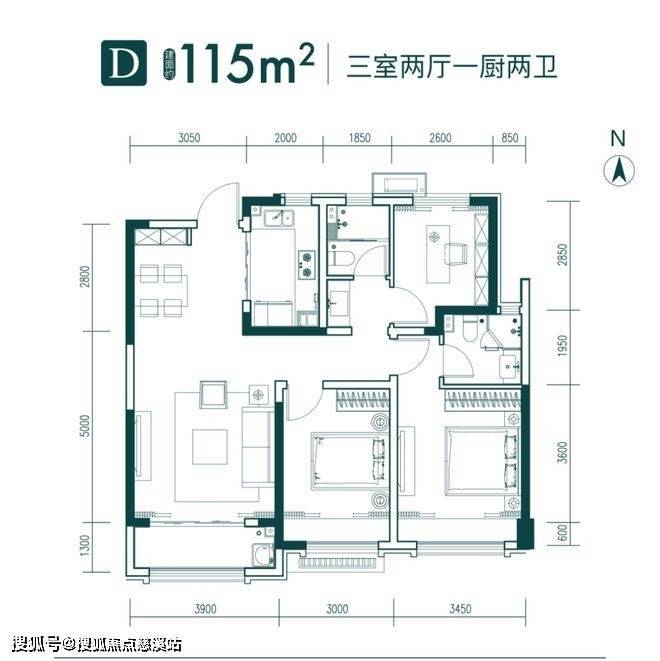 三个户型均为两卫设计,三室紧凑户型、四室宽景大宅均有。且阳台部分,全部都是落地窗设计,采光、空间、视野更好。