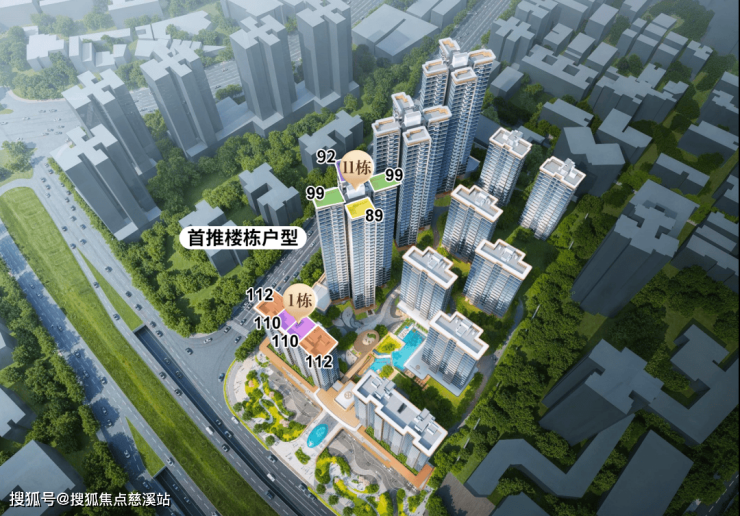 首推1栋、11栋,11栋主打小户型,即建面约89-92-99㎡三至四房,1栋小高层板楼主打改善,为建面约110-112㎡四房。