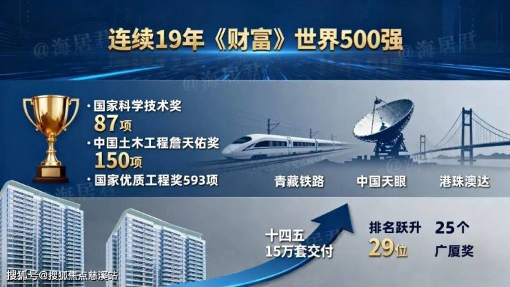 它不仅连续19年跻身《财富》世界500强,更斩获国家科学技术奖87项、中国土木工程詹天佑奖150项、国家优质工程奖593项等行业重量级荣誉。