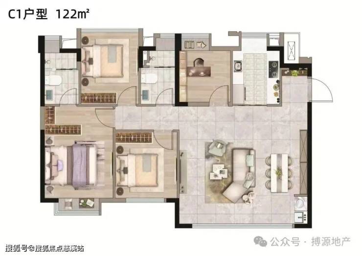 建面约122㎡四房两厅二卫 小高层 两梯两户