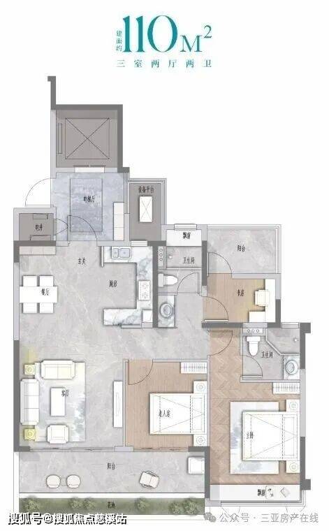 建面约127㎡舒适三房:空间布局合理,兼顾度假与生活