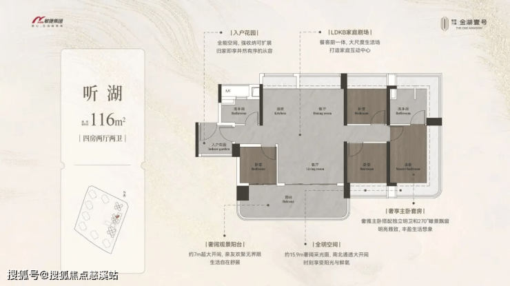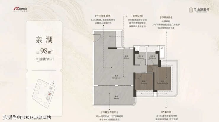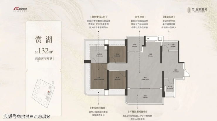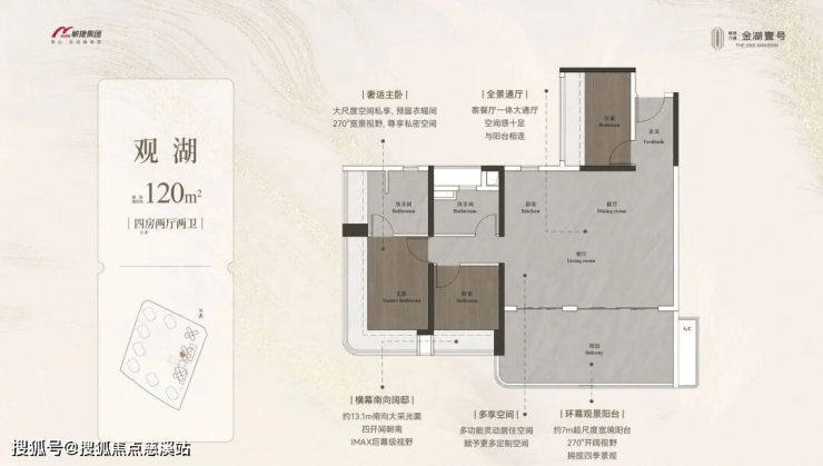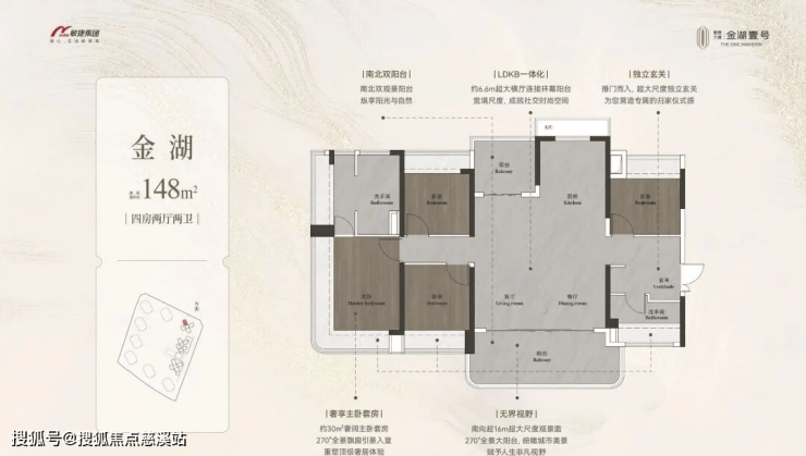 约98-148㎡全南向湖居四房,对标当代华宅范本,创变居住空间的新想象;全南向新规的突破、环拥天地的居住空间、精工雕琢细节之美,打造湖居理想之家,为万博CBD钜献湖居壹号作品。