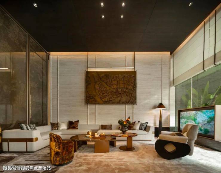 ◎270度转角无柱曲面屏立面设计,为大宅空间融入壮阔的观景视野;