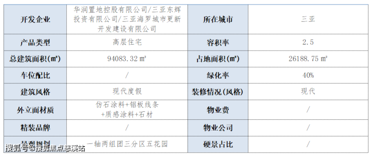 开发企业:华润置地控股有限公司/三亚东辉投资有限公司/三亚海罗城市更新开发建设有限公司