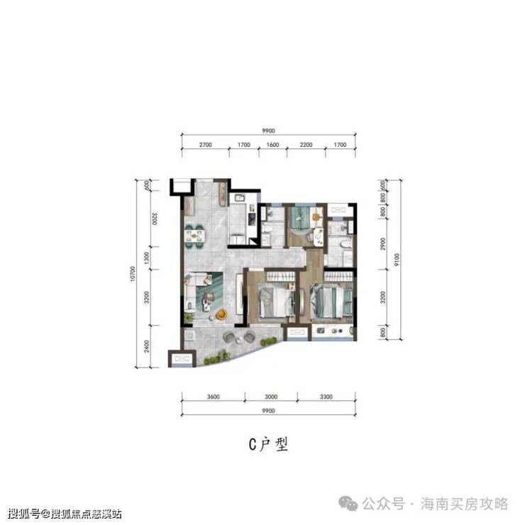 ▼“C”户型图约95㎡三室两厅两卫▼