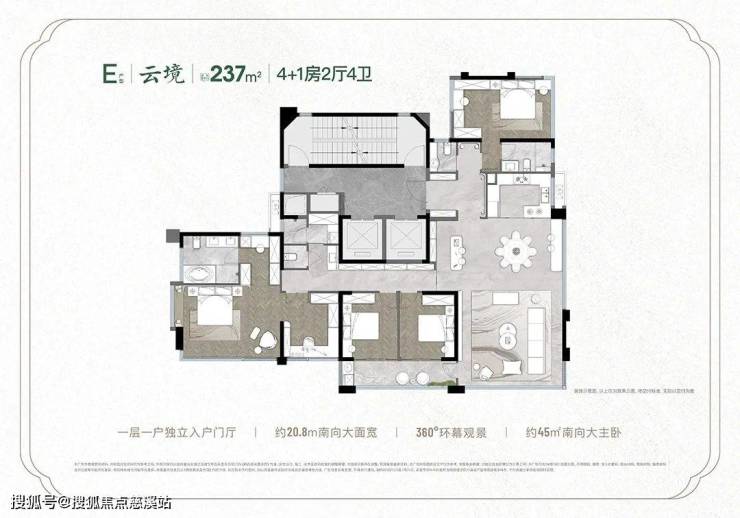 在此前公布的各楼栋标准层户型平面图中,我们能看到,项目整个小区基本上是两梯两户、两梯三户的纯板楼设计,甚至还有一层一户的纯大平层,并且通透的板楼设计,栋楼的户型得房率更高,居住舒适度更纯粹,建筑面积约126-130㎡、143㎡、187㎡、237㎡户型,占到了整个小区约80%以上,基本上都是T1、T2楼栋为主,是目前莆田市场上罕见的纯粹改善社区。