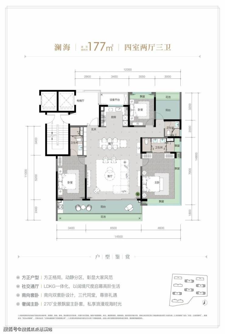 规划建筑面积约126-213㎡观海奢装大平层,约3.1米阔绰层高,部分户型创新设计270°全景飘窗主卧套、四开间朝南等,全成品高标奢装,营造全新舒居体验。