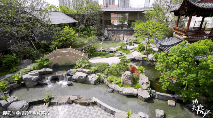 项目打造的新中式风格园林,复刻佛山梁园,典雅大气,颜值相当高。