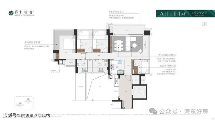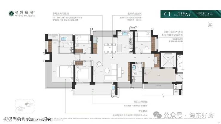 - 全新138㎡四房二卫:仅分布于1-1栋小区中心位置,独梯入户可灵活设计利用。采用LDKB通透大方厅布局,可规划“X空间”(开放式书房、茶室等),相比143㎡户型少5㎡,却能享受同等功能体验,尤其适合注重通风对流与厅堂互动的家庭。