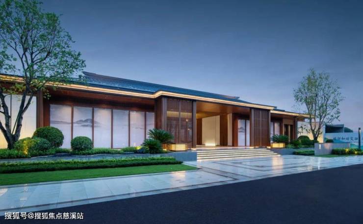 简约庄严的归府门楼,左右两侧设置层次丰富的树池、绿篱以及景墙,层层强调横向延伸感,搭配干净简洁的前景草坪,最终形成庄严开敞的迎宾空间,传承礼序,彰显出仪式感。