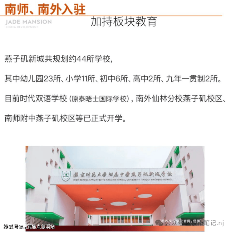 教育方面,南师附中教育集团为板块定下基调,项目东侧规划有初中和小学用地,未来有望实现家门口的优质教育;