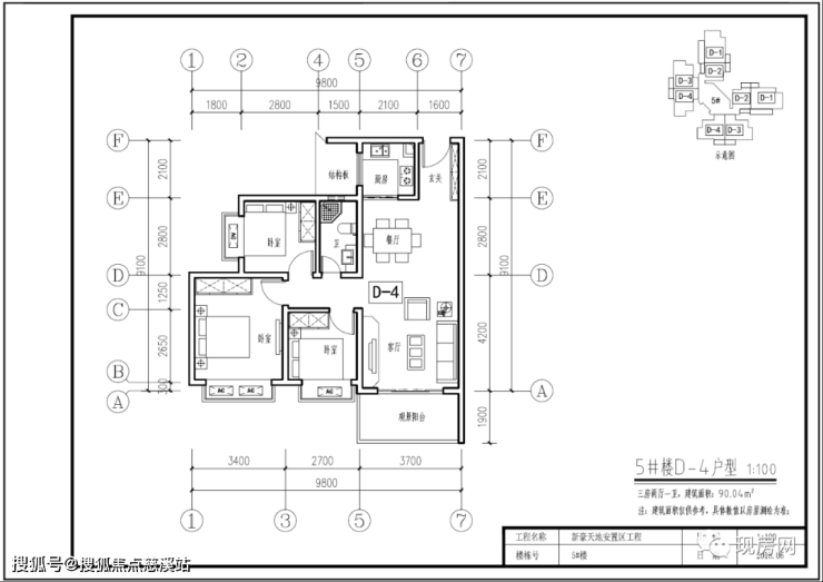 5#号楼D4户型90.04㎡(三房两厅一卫)