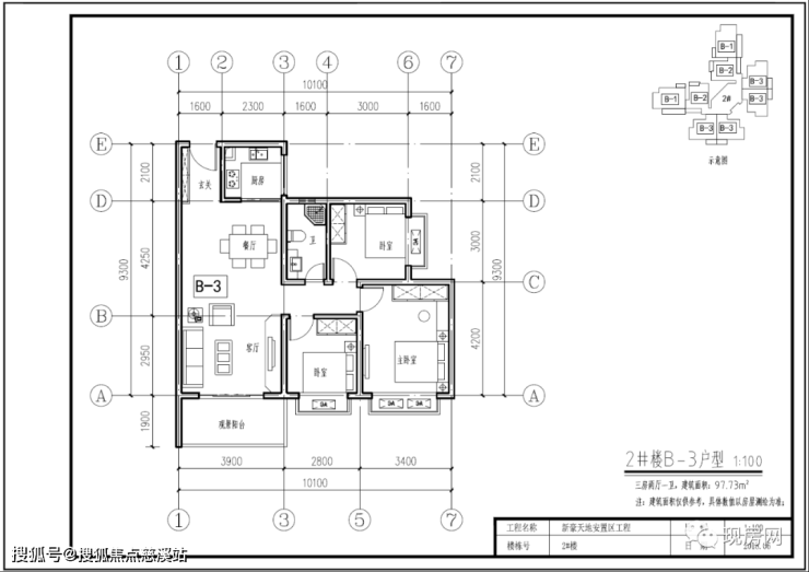 2#号楼B3户型97.93㎡(三房两厅一卫)