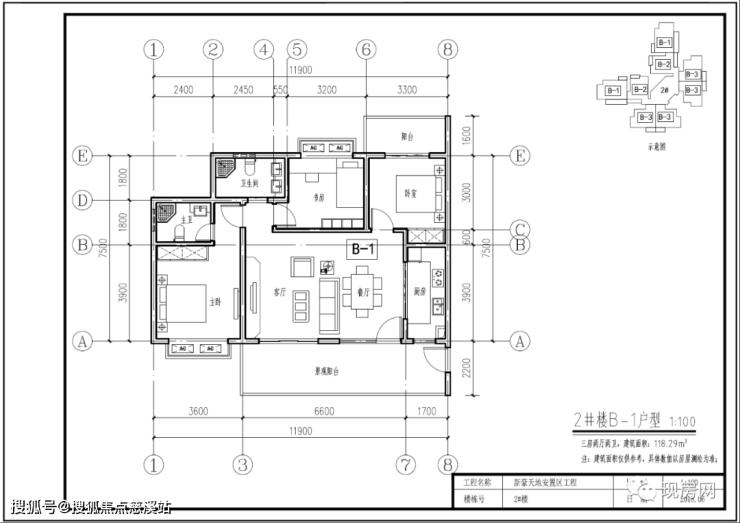 2#号楼B1户型118.29㎡(三房两厅两卫)